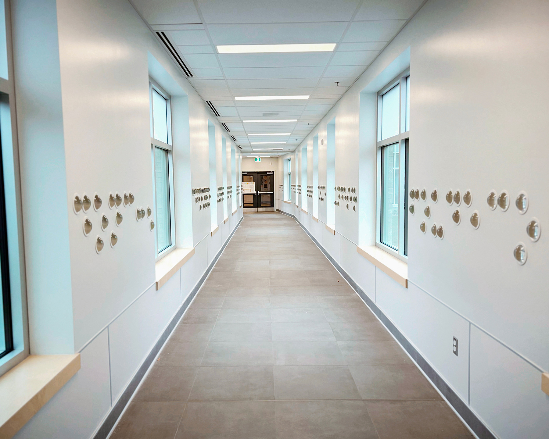 Notre réflexion sur ce projet, le passage de l’ancienne à la nouvelle aile et la vocation particulière de l’école nous a menés aux symboles et aux différentes formes d’illustrations graphiques employés pour la communication… celles du passé et celles du présent, dans toutes les langues qui se lisent avec les yeux mais également dans la langue qui se lit avec les doigts.